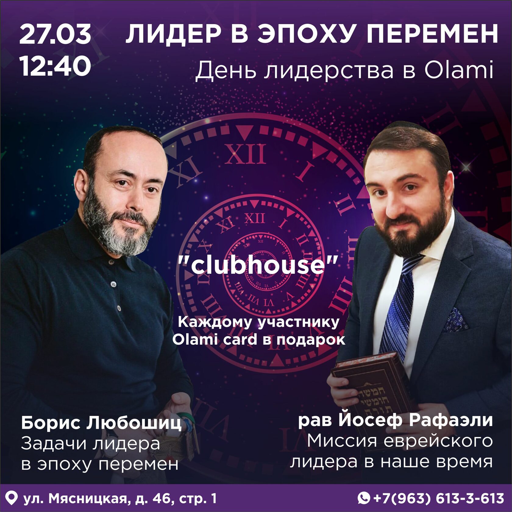 Харизма наших спикеров зарядит кого угодно, и уже на самом мероприятии Вы сможете проявить себя, познакомиться с интересными людьми и начать планировать то, что изменит еврейскую Москву.