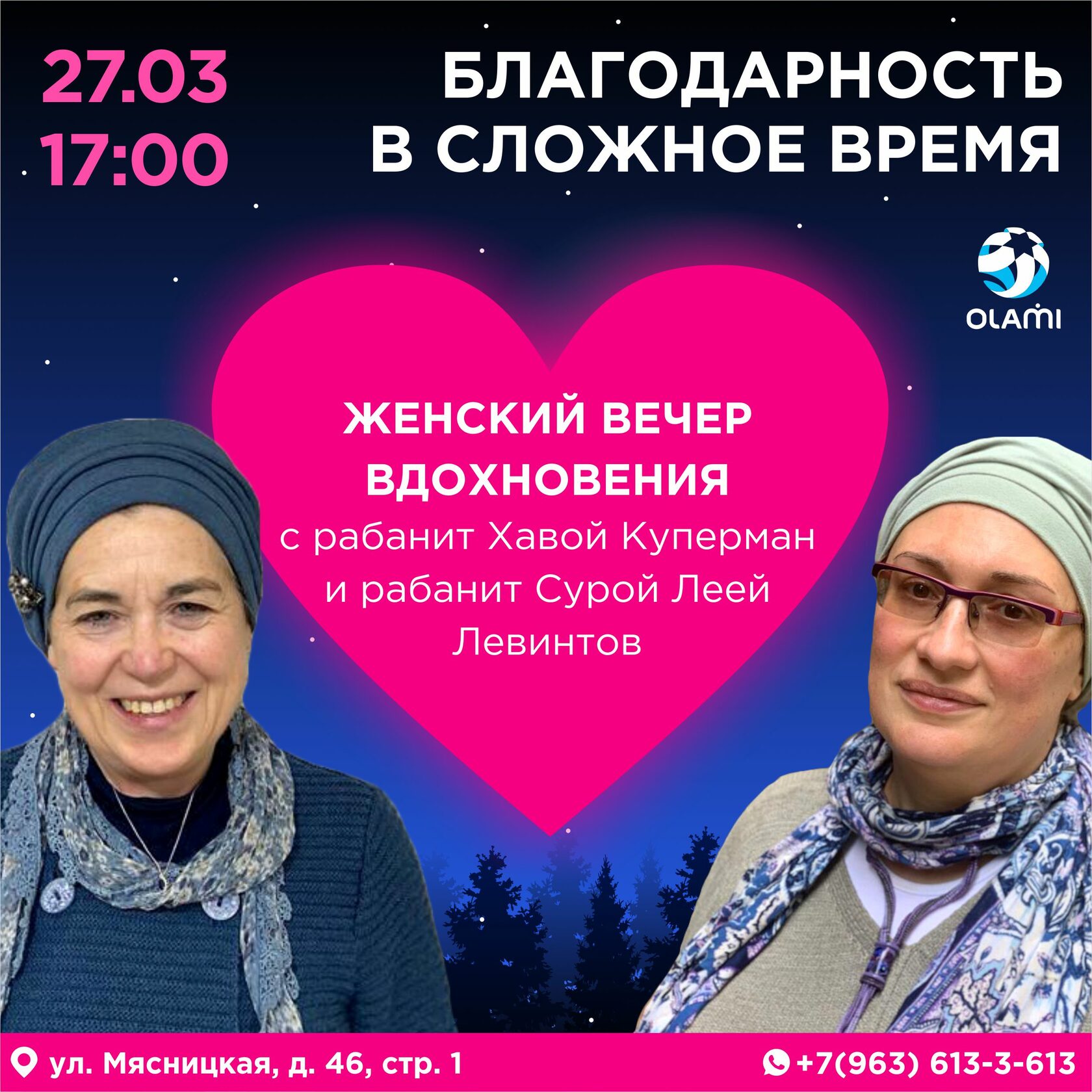 Рабанит Хава Куперман — дочь рава Ицхака Зильбера, женский спикер №1 в русскоязычном мире и рабанит Сура Лея Левинтов — невропатолог, гомеопат, тренер НЛП дадут нам новый взгляд на то, как посмотреть на многие вещи с другой стороны и получить благословение от Всевышнего.