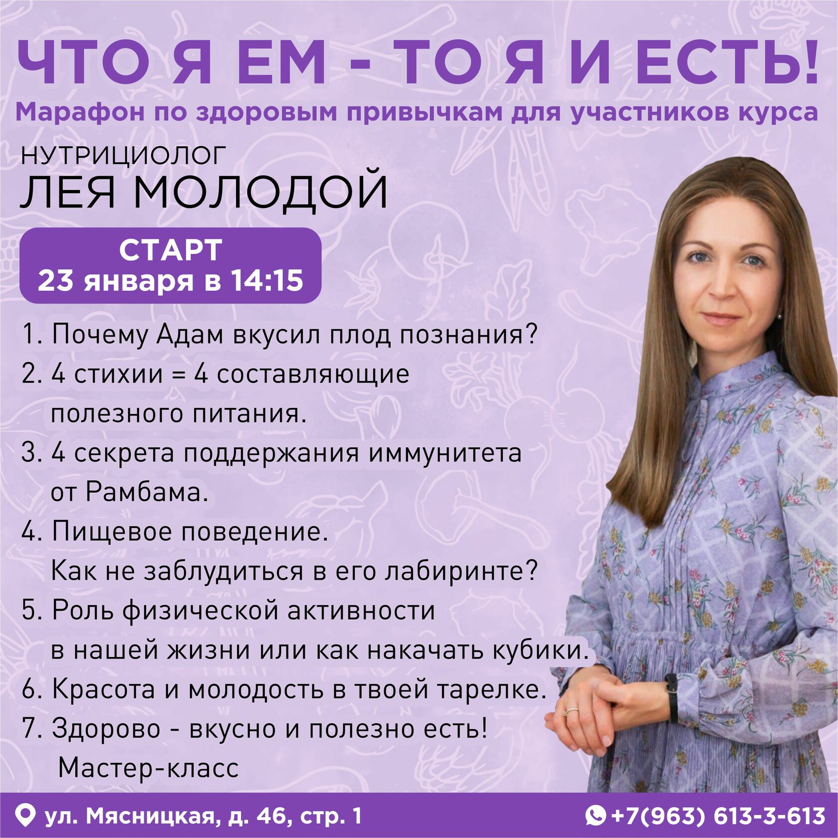 На этом курсе вы сможете наладить рацион правильного питания, укрепить здоровье, снизить вес и научиться жить гармоничной и сбалансированной жизнью. Что Я ем — то я и есть!