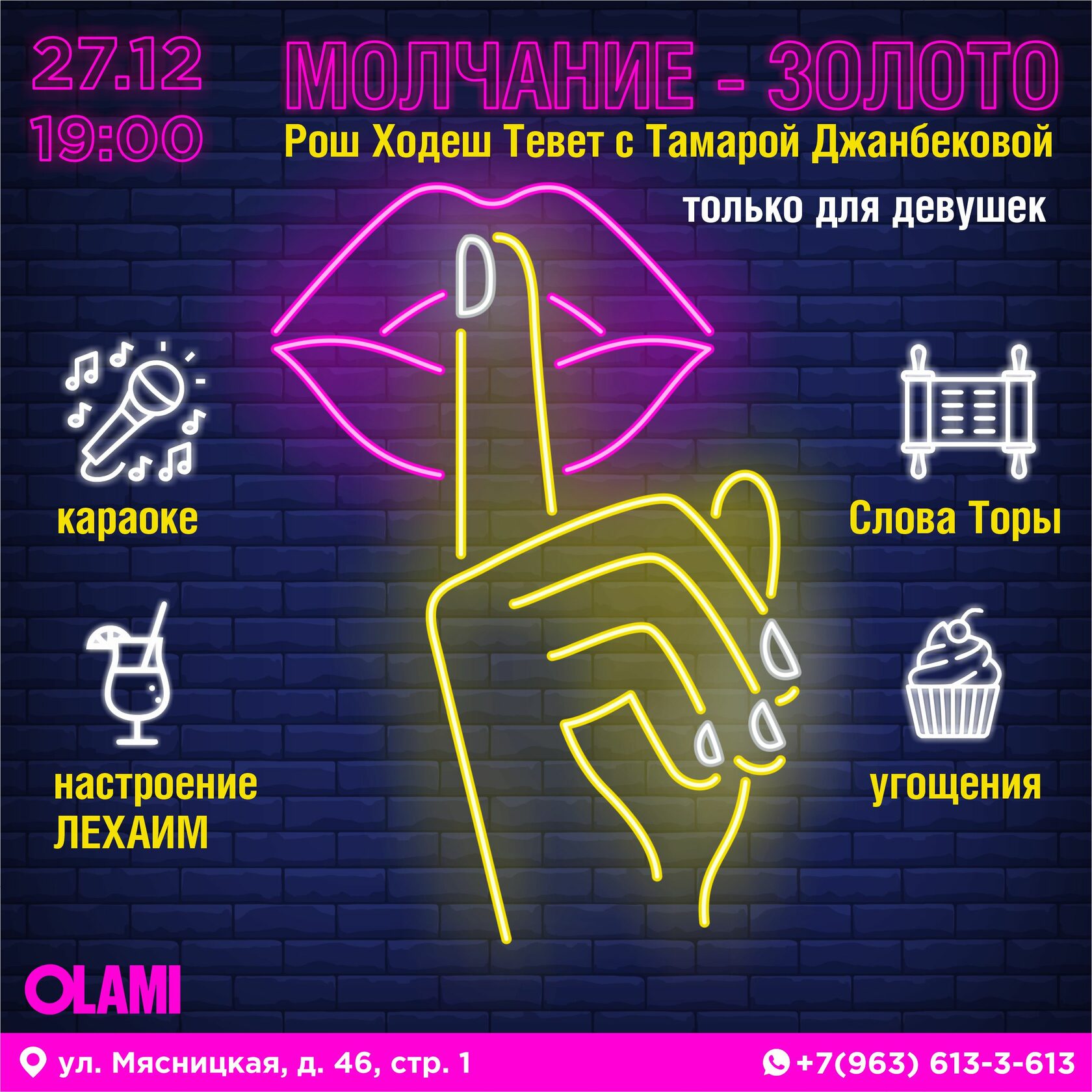 Дорогие девушки! Мы ждем вас на встречу в честь Рош Ходеш Тевет, на которой Тамара Джанбекова вместе с нами выяснит, настоящее ли золото - наше молчание?! ✨