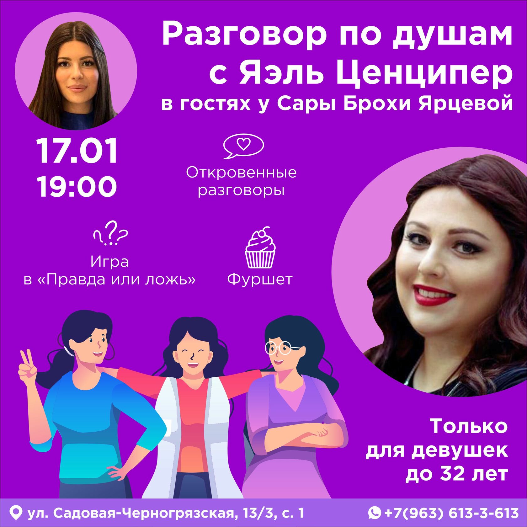 Мы приглашаем вас в гости к Саре-Брохе, где в камерной обстановке вы сможете обсудить любые сокровенные вопросы раббанит Яэль Ценципер, мы проиграем вместе в "Правда или